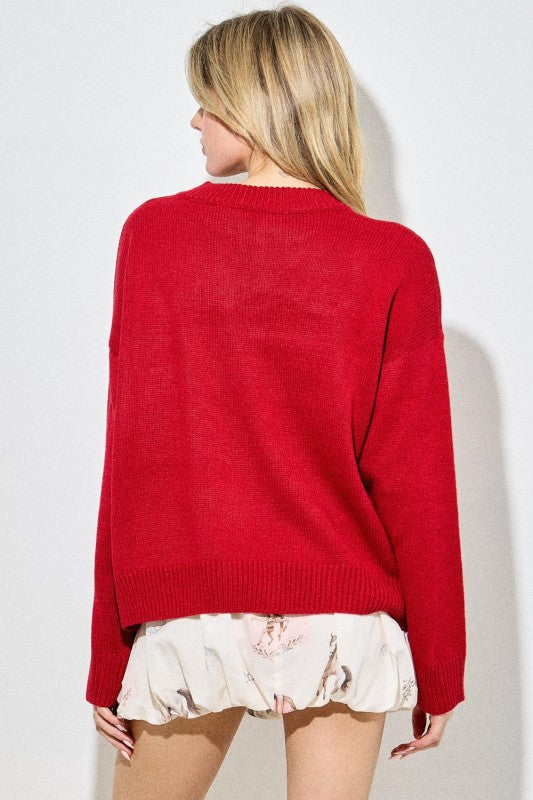 This cozy knit sweater features a classic round neckline and long sleeves, perfect for staying warm and stylish this holiday season.